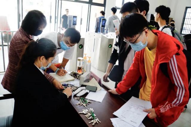 为确保疫情防控期间迎新各项工作顺利开展,学校成立2020年迎新工作领导小组,负责统一指挥、统筹协调全校迎新工作。在常态化疫情防控期间,今年的报到流程与往年大不相同。新生从西大门需检测体温、核验健康码合格后才能进校,学生家长无特殊情况不进入校园。