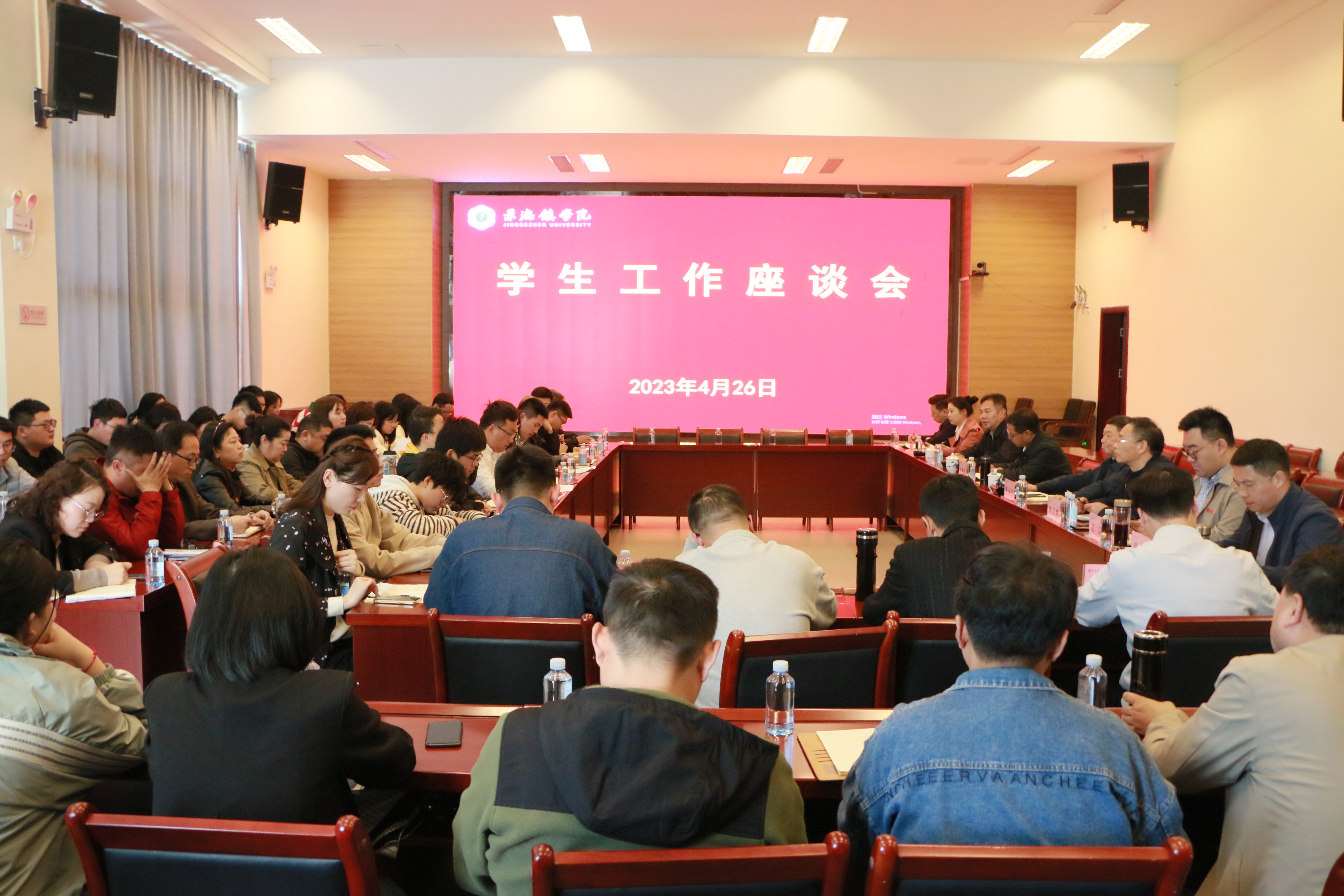 校人事处处长倪艳翔、组织部副部长敖景辉、宣传部副部长汪万鹏、现代教育中心主任罗子林等相关部门负责人,各学院党委副书记、学生科科长和全体辅导员参加座谈会。