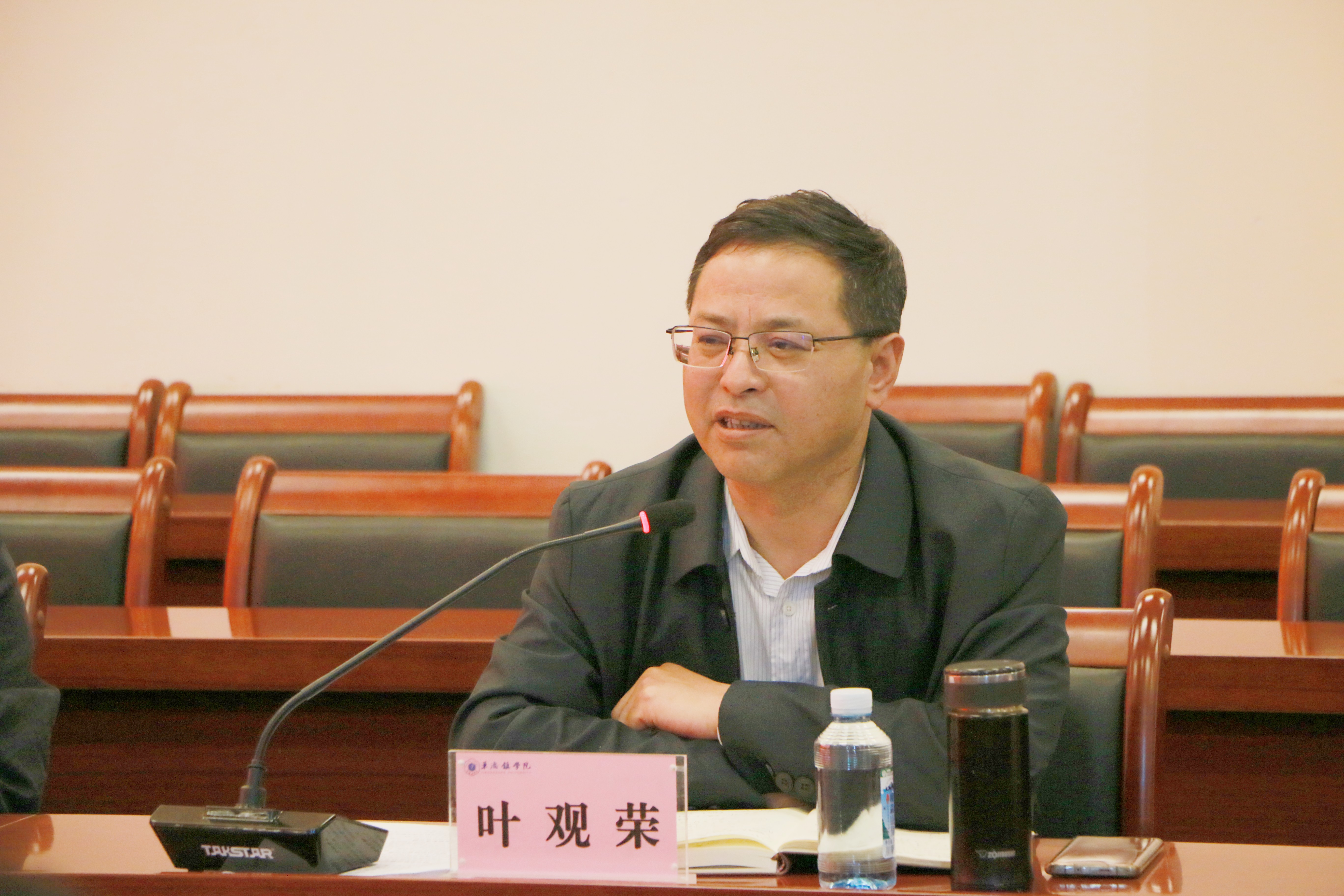 叶观荣肯定了从事在学生工作一线的辅导员们的工作成效。他指出,学校思政工作关系到学校的社会主义办学方向,关系到培养德智体美劳全面发展的高素质人才。辅导员是开展大学生思想政治教育的中坚力量,要深刻认识到自身在育人工作中的主力作用。他表示,要以立德树人为中心,构建大思政格局,将学校思想政治工作贯穿教育教学全过程;要牢记为党育人、为国育才的初心使命,以习近平新时代中国特色社会主义思想为指导,强化对学生的思想政治引领,注重学生工作的实效;要厚植教育情怀,关注学生点滴成长,充分发挥桥梁和纽带作用,不断拓展思想政治教育途径,增强亲和力、感染力和可信度,做有温度的“执行者”和有尺度的“协调者”。