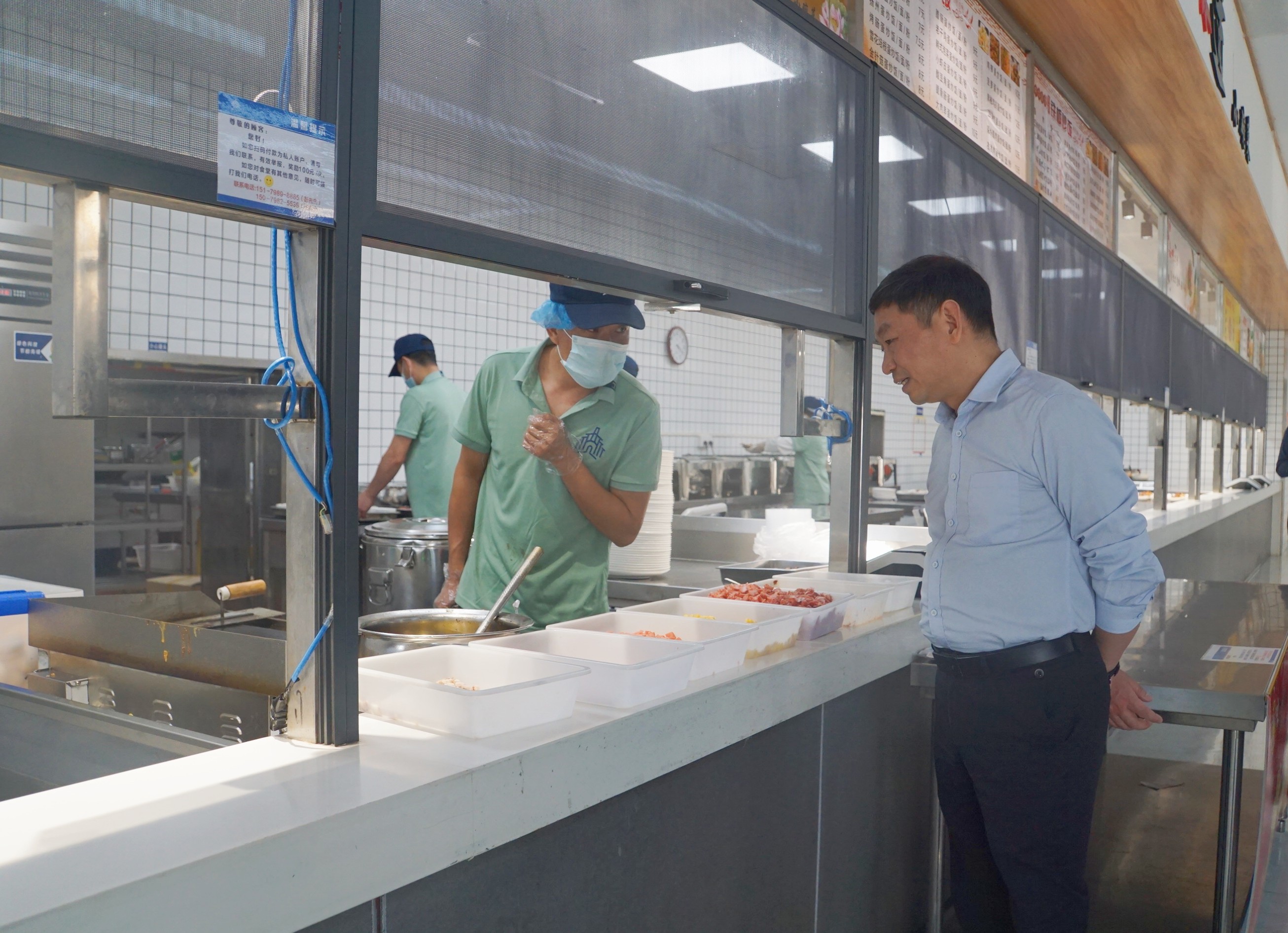 在食堂,陈运平了解三楼学生餐厅的整修情况,听取了后勤管理人员对餐厅布局、设备更新情况的介绍。陈运平亲切地同食堂工作人员交流,详细询问菜价菜品等。他强调,要强化食品安全主体责任,引进多样化、营养化需求的伙食;要加强食堂文化建设和学生监督管理力度,广泛听取师生意见建议,以服务育人为目标,进一步提高食堂膳食服务水平和质量,营造健康舒适的就餐环境。