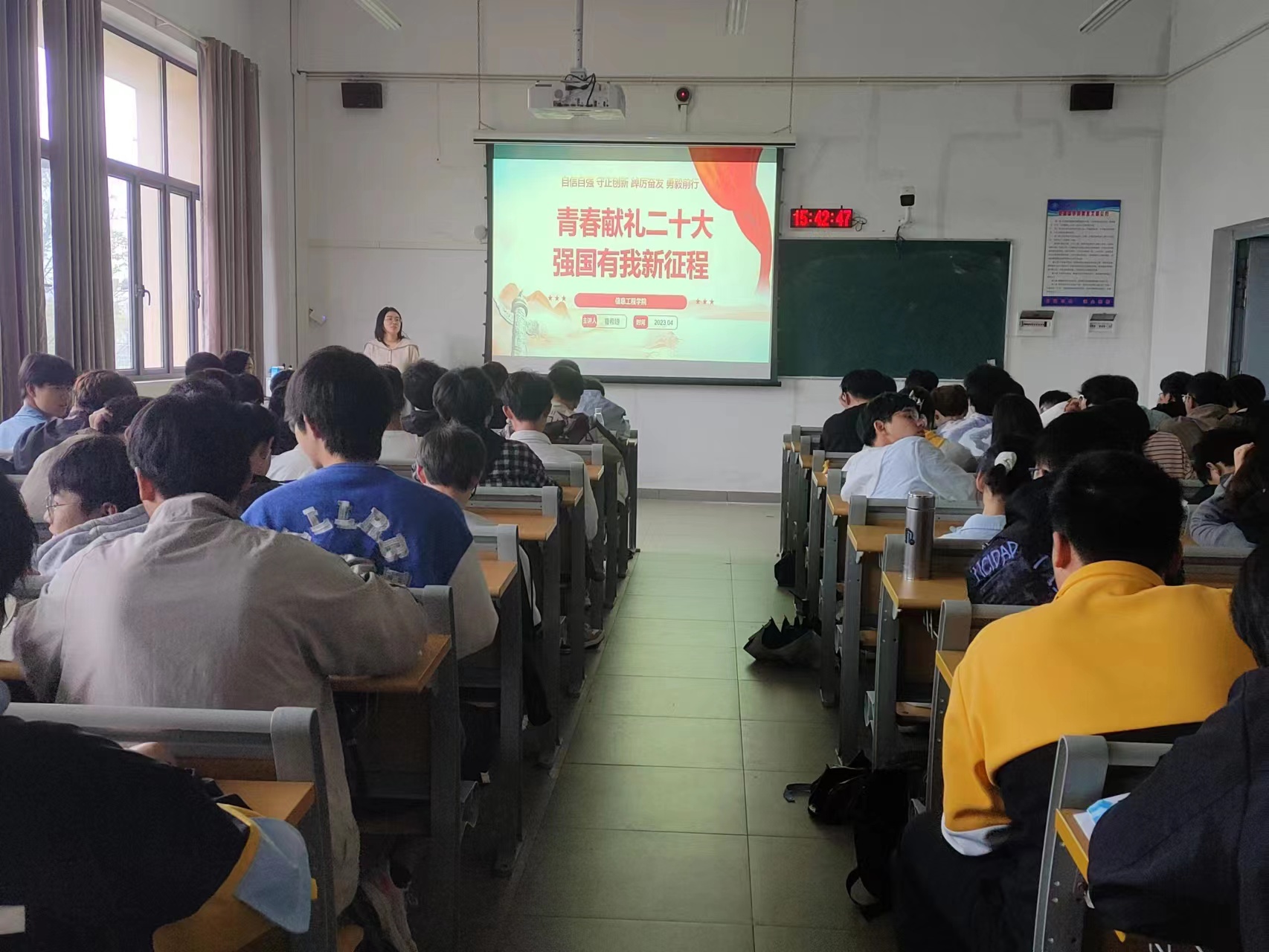 (本网讯:董樱萍)为引导学生深入学习贯彻党的二十大精神,4月13日至14日,信工学院辅导员曹希婕在开展“青春献礼二十大,强国有我新征程”主题宣讲,信工学院行政负责人黄顺发参加宣讲。