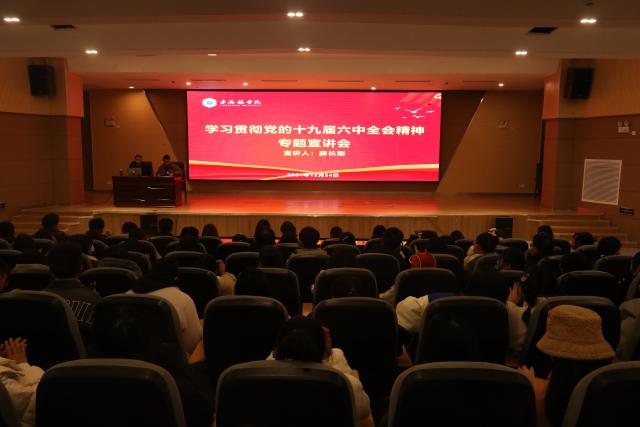 (本网讯:刘丽青)为深入学习贯彻党的十九届六中全会精神,12月24日下午,我校党的十九届六中全会精神专题宣讲会在图文报告厅举行。马克思主义学院思想政治教育系主任薛长刚博士作专题宣讲。宣讲会由宣传统战部统战科科长洪超主持。