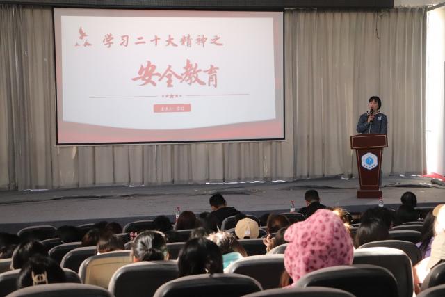 李虹首先从青年的重要地位、思想教育、未来前景等方面带领学生学深悟透二十大精神实质和内涵要求,其次带领同学们共同学习了党的二十大报告中所涉及的“依法治国”“国家安全”等方面内容,同时,向大家播放了消防火灾纪录片、交通事故短视频。本次的宣讲采取图、文、视频和讲述相结合的方式给同学们上了一堂生动的安全教育课,让学生们深刻理解到守护个人人身财产安全的重要性和掌握了相关防护措施。最后,她从现实出发,激励青年大学生爱党爱国、遵纪守法、砥砺前行,并将对祖国的爱葆藏心间,用其具体而积极的行动报效祖国,为新时代发展贡献青春力量!