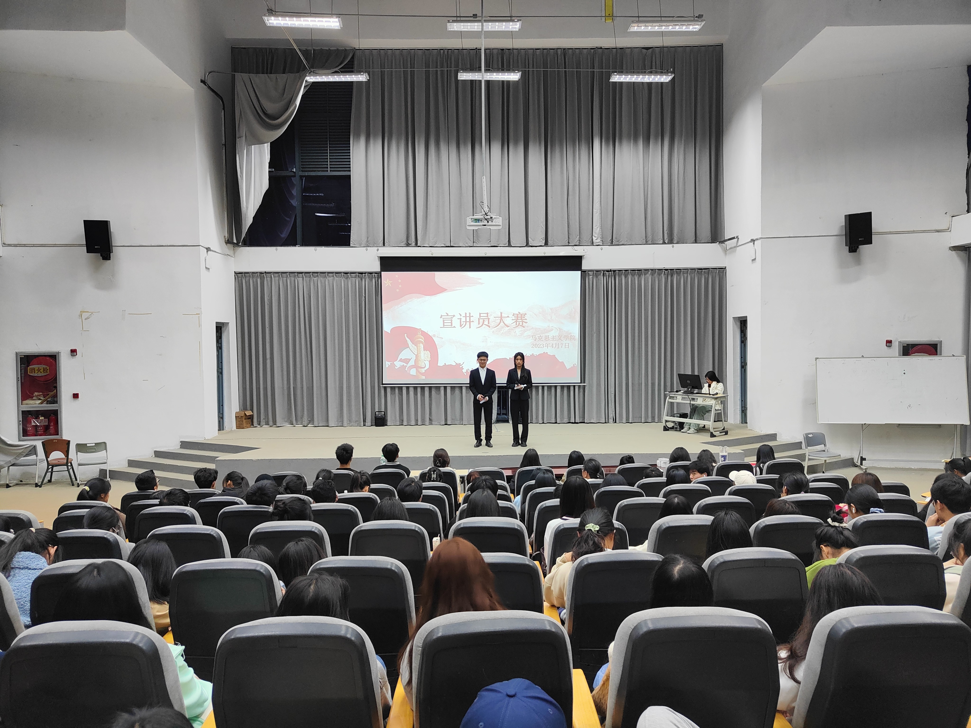 (本网讯:文|卢杨青/图|郑琦英)为学习宣传贯彻党的二十大精神,继承革命先辈的光荣传统,牢记党的嘱托,立志做有理想、敢担当、能吃苦、肯奋斗的新时代好青年。近日,马克思主义学院在第三报告厅举办“宣讲二十大,奋发再前行”宣讲员大赛。