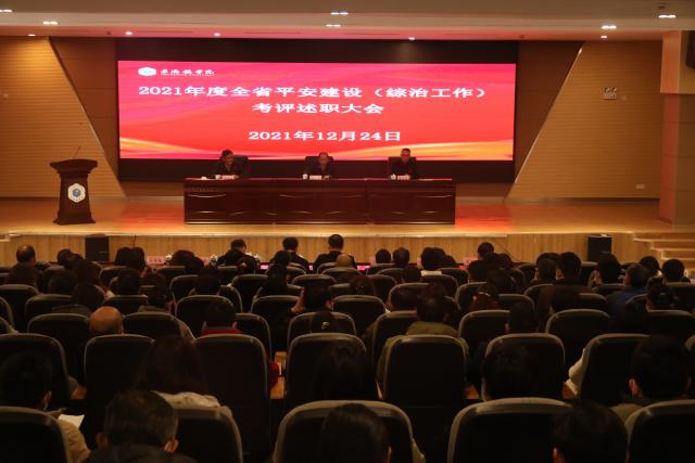 (本网讯:衷伟)12月24日上午,我校2021年度平安建设工作考评述职大会在图文报告厅召开。全省平安建设工作考评组组长、省法院二级高级法官熊春安出席大会并讲话,校党委副书记、校长陈雨前作《砥砺奋进为建设高水平的平安校园不懈努力》工作报告,全省平安建设工作考评组组员、省法学会秘书长喻斌、省法院研究室副主任邹湘林,校党委副书记王丽心,校党委委员、副校长吴丁、郑昕芾,校党委委员、纪委书记李新荣,校党委委员、组织部部长朱贺江,校党委委员、宣传统战部部长方文龙出席会议,校党委委员、副校长郑富年主持会议。