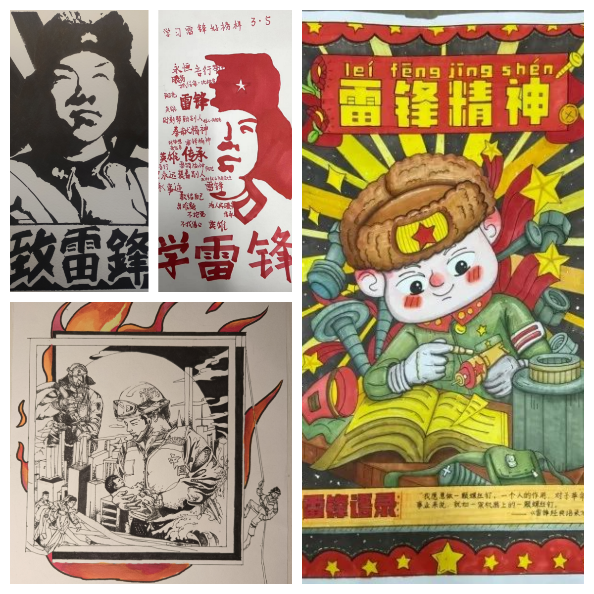 同学们踊跃报名参加活动,通过学习《雷锋日记》等系列红色典籍、红色著作、感悟雷锋精神,以绘画的形式进行作品创作,用一幅幅作品描绘了自己心中的雷锋事迹。活动共收到各年级不同专业近135组作品,最终评选出21件优秀作品。