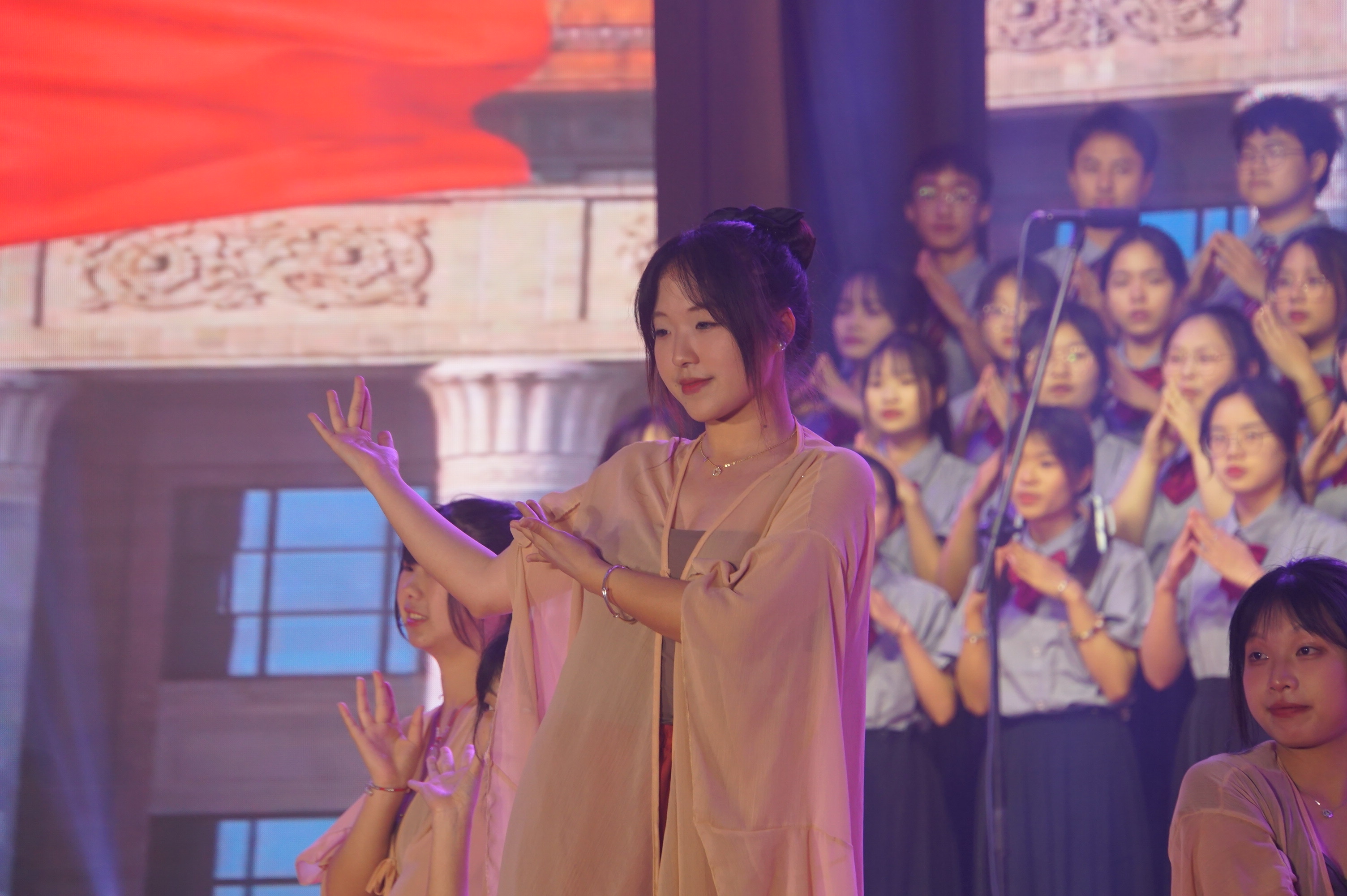大会在全校师生合唱校歌中落下帷幕。