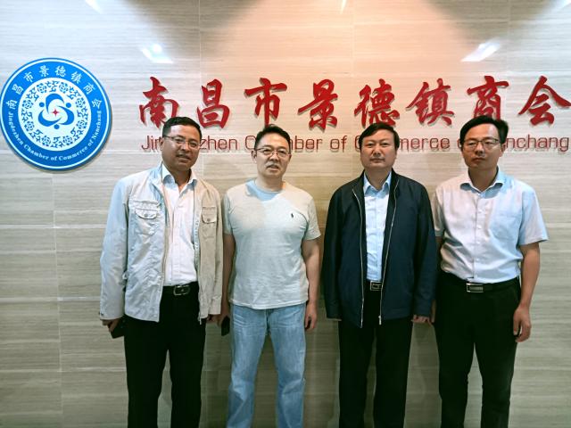 (本网讯:景院轩)5月26日下午,校党委书记叶观荣,党委副书记王丽心赴南昌市景德镇商会走访。商会会长吴社田,党支部书记、副会长危长城,轮值理事李惊,义工站副站长洪正东,维权站站长邵佳,办公室主任秦娟等陪同走访。