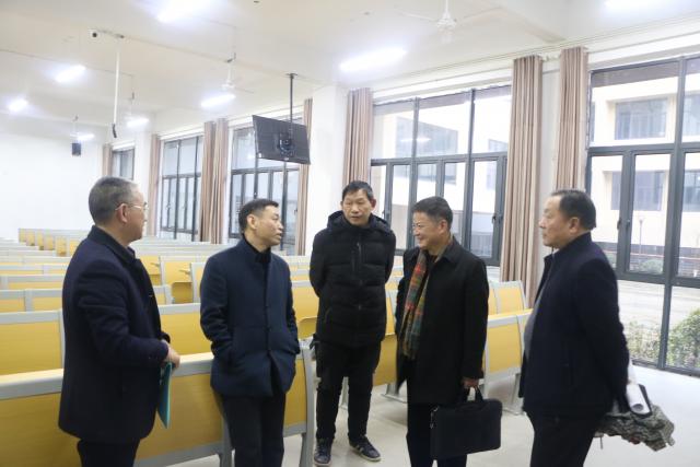 (本网讯:刘斌权 罗子林)2月18日下午,全校中层干部大会一结束,党委副书记、校长陈运平就马不停蹄率领教务处、现教中心等部门负责人来到教学楼,了解、检查学校智慧教室建设及开学前准备情况。党委委员、副校长吴丁一同检查。