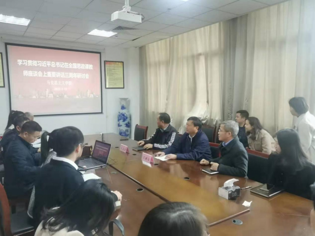 (本网讯:马苑轩)3月18日,学习贯彻“习近平总书记在全国思政课教师座谈会上重要讲话精神”三周年研讨会在马克思主义学院会议室召开,校党委副书记王丽心出席并讲话。党委委员、宣传部部长方文龙出席会议,马克思主义学院党总支书记郝海旺主持。