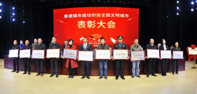 (本网讯:郑金江)12月11日上午,景德镇市召开成功创建全国文明城市表彰大会。会上,对创建工作中全市涌现出的一批工作基础扎实、创建成效突出、群众满意认可、具有示范作用的先进典型进行表彰。我校荣获创建全国文明城市工作“先进集体”,郑金江、郑勇军、刘斌权、张琳、程绍鹏五名同志获通报嘉奖。