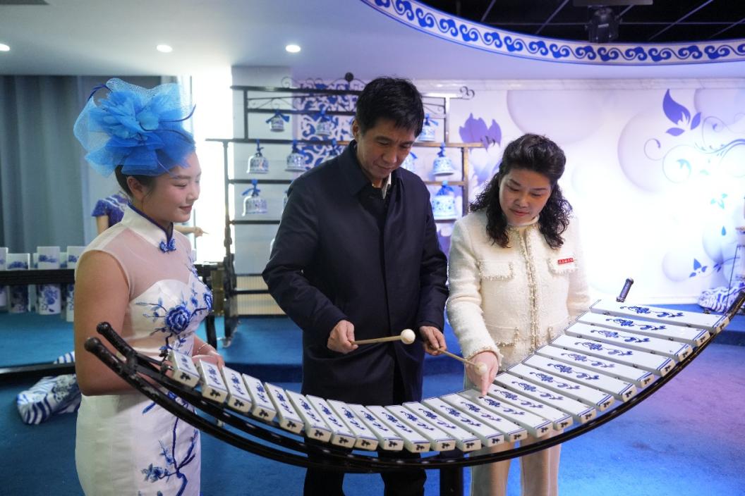 王启明体验瓷乐器 校融媒体中心记者宗宇轩摄