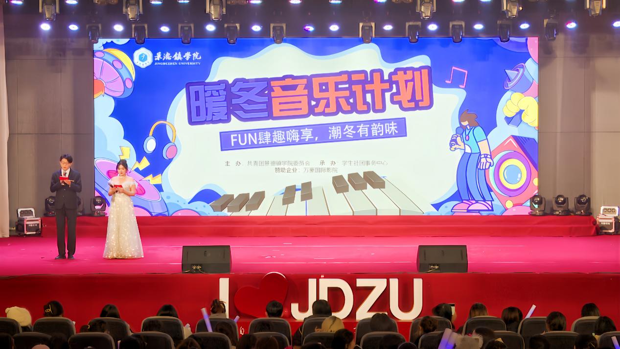 (本网讯:文|杜雨翰、王雅丹/图|陈裕、董梓萌)11月28日晚,由共青团景德镇学院委员会主办、学生社团事务中心承办,万豪国际影院赞助的“暖冬音乐计划”冬日音乐节在我校多功能音乐厅火热开启。音乐厅内暖意融融,师生们以悠扬的歌声和炽热的情感,共同编织了一场冬日里的音乐盛宴,展现了校园丰富的文化生活。