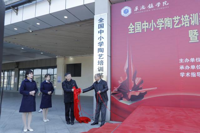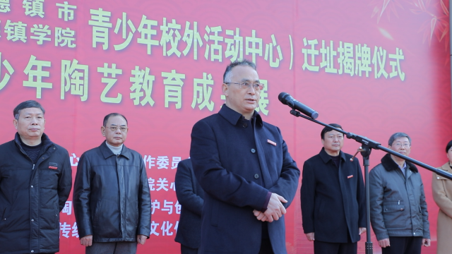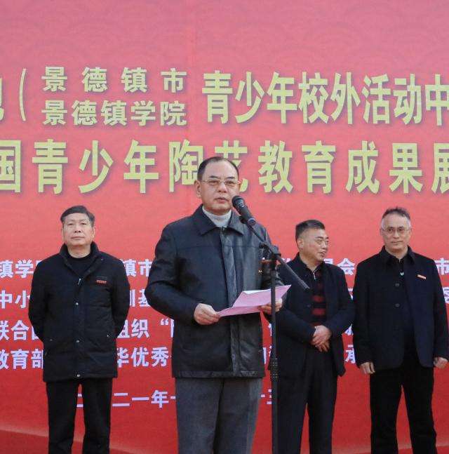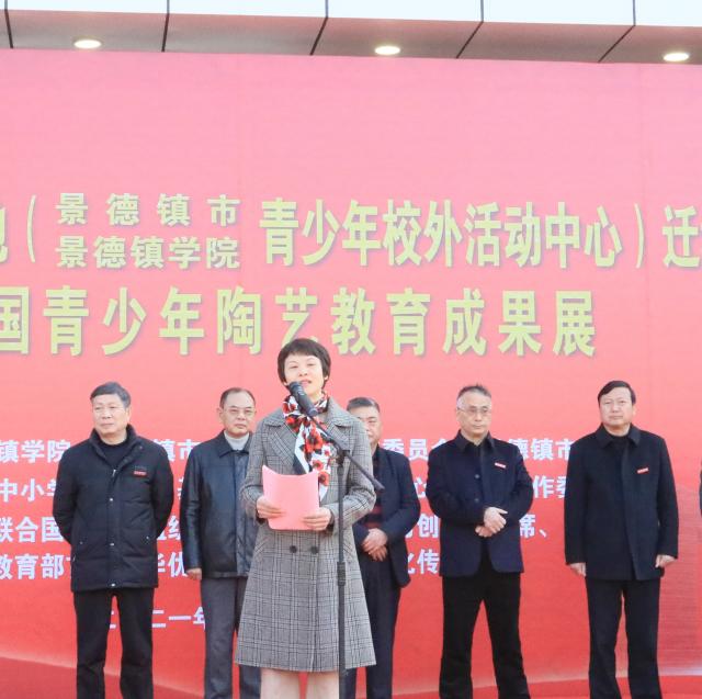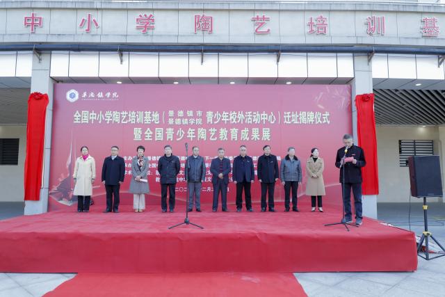 (本网讯:陶毅)12月23日上午,岁末的霜风中夹着丝丝寒意,景德镇市体育中心却喜气洋洋,温暖如春,由景德镇学院、景德镇市关心下一代工作委员会和景德镇市教育局主办、全国中小学陶艺培训基地和景德镇学院关心下一代工作委员会承办的全国中小学陶艺培训基地(青少年校外活动中心)迁址揭牌仪式暨“全国青少年陶艺教育成果展”在此隆重举行。市人大常委会一级巡视员唐良、市关心下一代工作委员会主任周华保、景德镇学院党委书记李良智,党委副书记、校长陈雨前,党委副书记王丽心,党委委员、副校长郑富年、郑昕芾,党委委员、宣传统战部部长方文龙,关工委主任舒超英和我校党政办公室、后勤处、保卫处、国教中心、校团委、艺术学院、陶瓷文化艺术研究中心等职能部门、相关院系和科研机构负责人以及市教育局、市体育局、市科技局、市科协、市妇联、市体校的相关负责人和研学机构、学校的师生和陶瓷艺术家代表200余人济济一堂,共襄盛举。