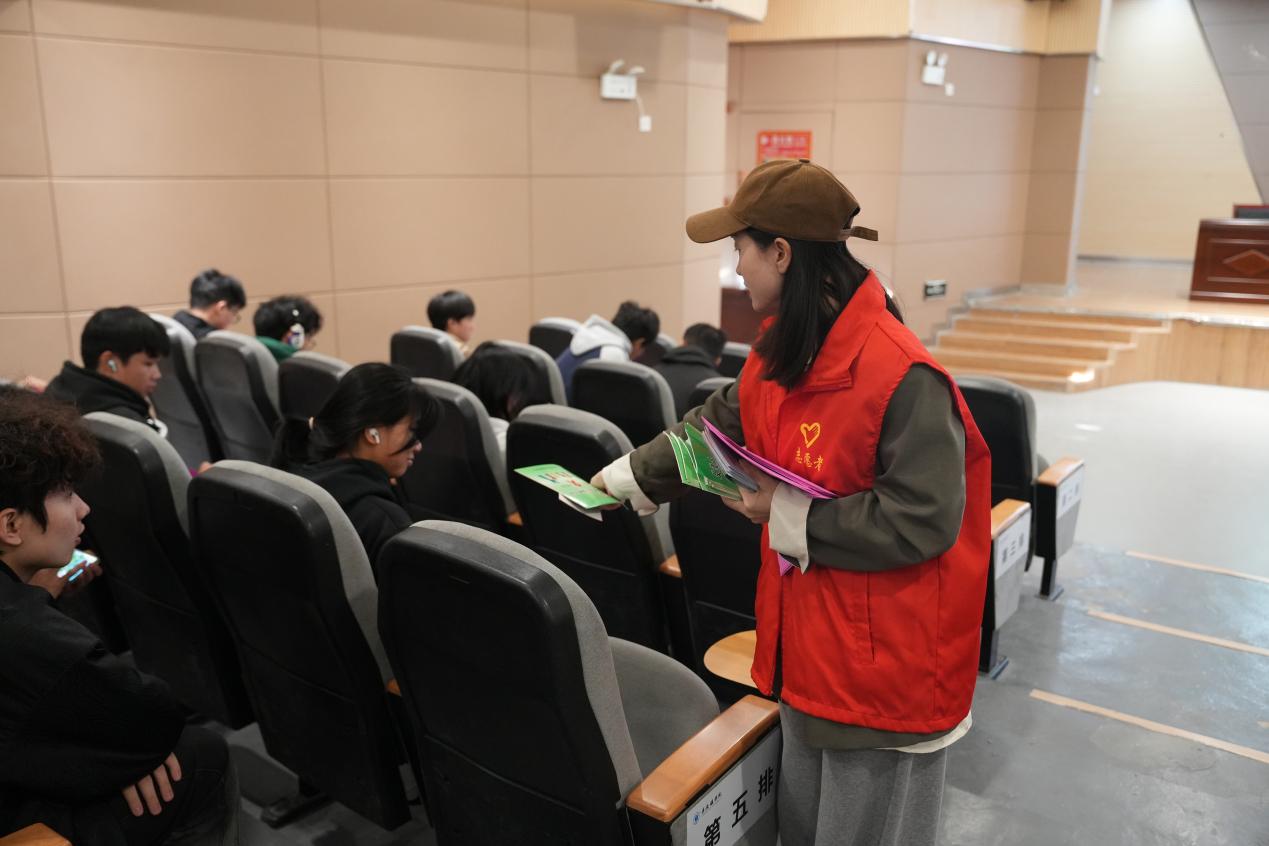 在讲座开始之前,校志愿者们向现场的师生分发了预防艾滋病的宣传手册。手册内容详实、图文并茂,通过直观易懂的方式,帮助大家更好地了解艾滋病的相关知识,有效提高大家对艾滋病的防控意识。
