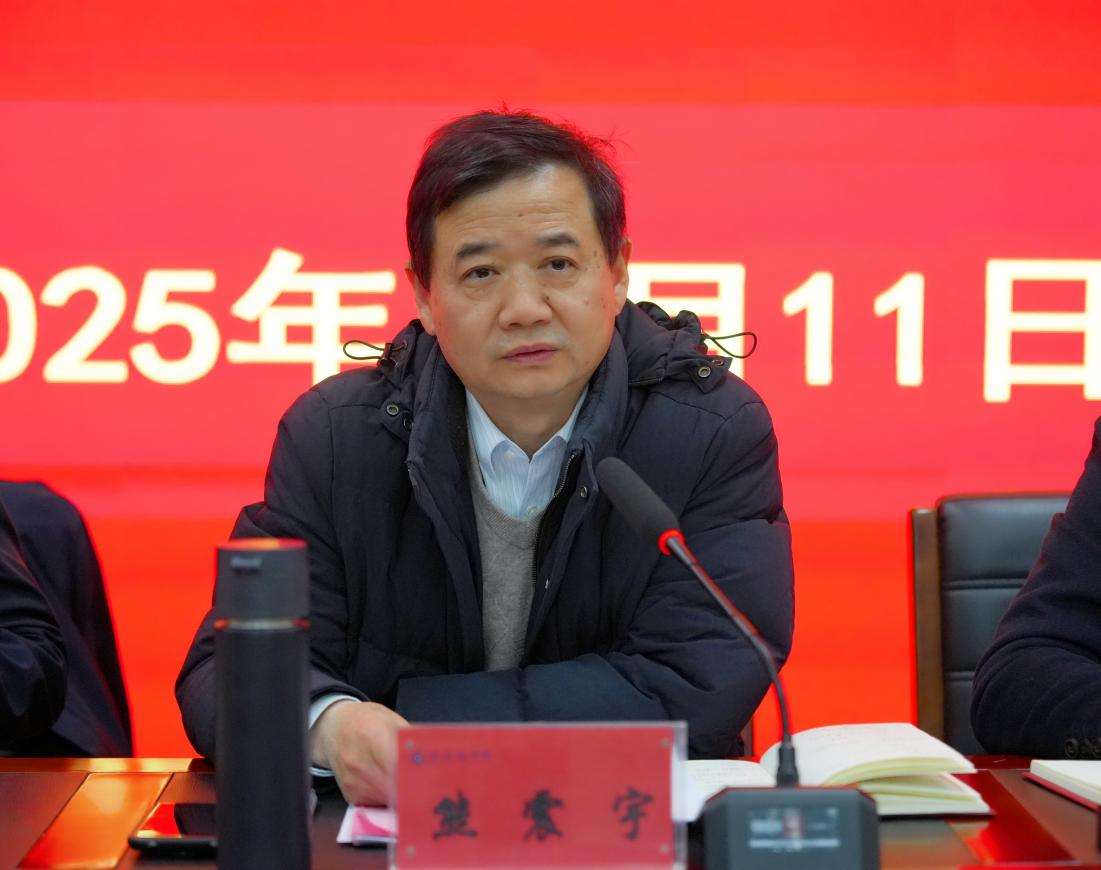 他强调,学校发展呈现勃勃生机,让人充满信心,但是仍需看到学校在发展过程中面临的新情况、新挑战,要充分利用寒假时间,科学谋划、提前着手推进2025年重点工作,一是要高度重视、全面推进师范类专业认证、审核评估和硕士点创建工作;二是要紧紧围绕现代产业学院的建设任务和目标清单,着力推进产业学院发展;三是要持续开展高职称、高技能人才的引进工作,打造高素质专业化人才队伍;四是要加强科研队伍和水平建设,提早谋划省级科学技术奖等省级科研成果奖的申报工作;五是要优化绩效目标管理考核机制,推动评价考核结果与资源配置“挂钩”,逐渐实现“硬挂钩”;六是要统筹项目调度,加快推进实施生物制药产教融合改造提升项目;七是要进一步强化校园安全管理机制及设备维护保养工作,确保运行安全无虞;八是要加强学生离校返校管理,确保学生平稳有序离校返校,平安归家;九是要积极开展人文关怀活动,悉心做好特殊群体慰问工作;十是要守牢政治底线,深化廉政建设,着力营造风清气正、清廉过节的良好氛围。