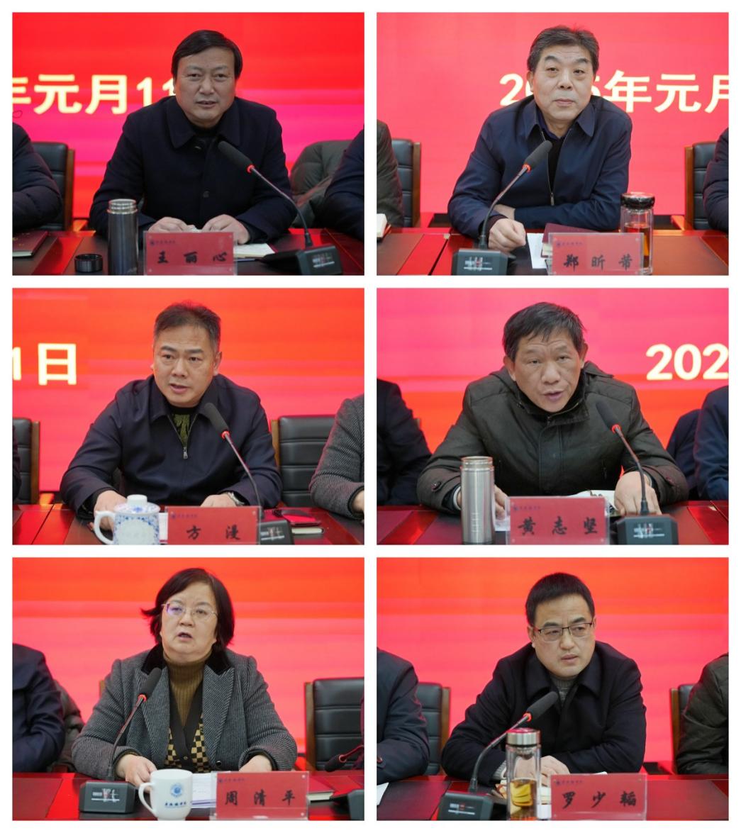 校党委副书记王丽心,党委委员、副校长郑昕芾,党委委员、副校长方漫,副校长黄志坚,党委委员、副校长周清平,纪委书记罗少韬分别就各自分管领域的寒假工作和下学期开学初工作进行安排。