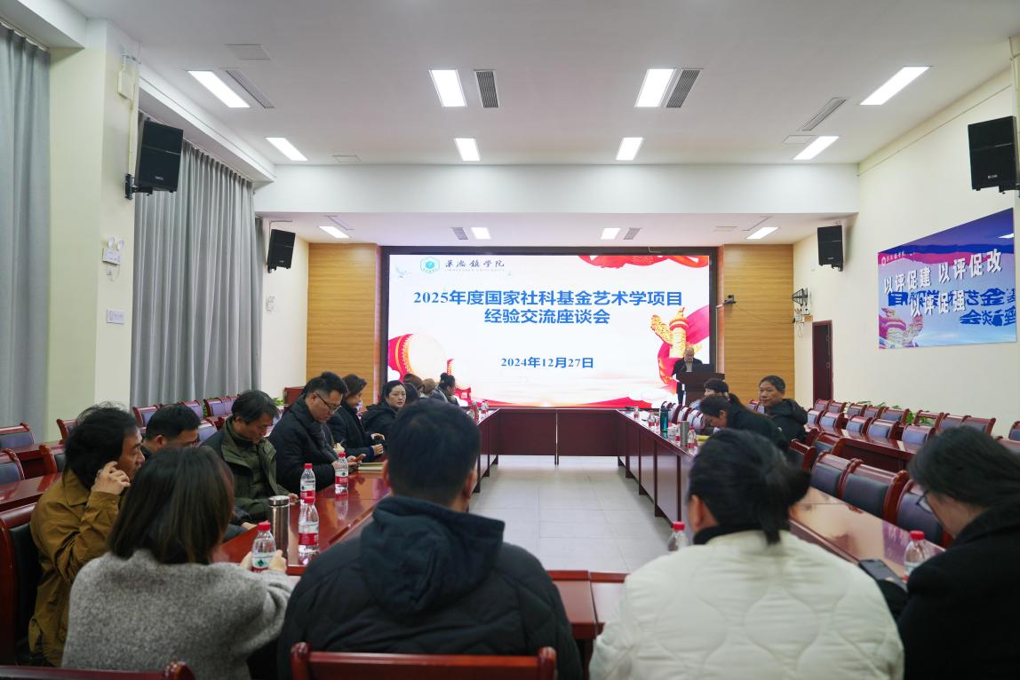 (本网讯:汪芳莉)为精进我校国家社科基金艺术学项目的申请质量和命中率,12月27日上午,校科研处在第一报告厅召开2025年国家社科基金艺术学项目申报交流座谈会,邀请国内著名陶瓷艺术家、江西美术家协会女美术家艺术委员会秘书长、景德镇陶瓷大学刘乐君教授担任主讲嘉宾,副校长黄志坚出席,科研处处长杨波主持。