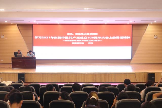 (本网讯:刘丽青、祝海丽)为认真学习贯彻习近平总书记在庆祝中国共产党成立100周年大会上的重要讲话精神,持续推进党史学习教育走深走实,9月30日下午,我校习近平总书记“七一”重要讲话精神宣讲报告会在图文报告厅举行。马克思主义学院苏舟博士作宣讲。