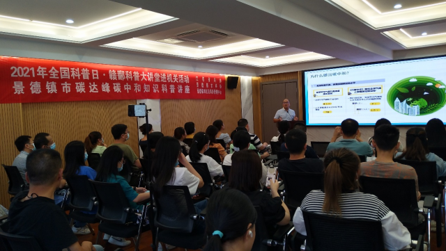 (本网讯:景苑轩)为进一步让公众了解碳达峰、碳中和目标,普及生态文明知识,9月23日上午,景德镇市科协、市机关事务管理中心联合举办2021年全国科普日·赣鄱科普大讲堂进机关活动,活动以现场听讲座、网络直播的形式,线上线下同时进行。