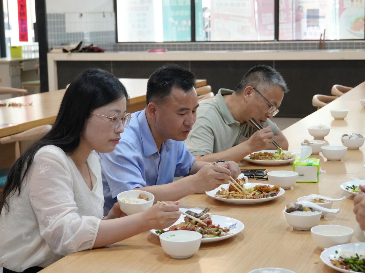 他还来到食堂窗口,了解了菜品价格及学生日常就餐喜好等,并在食堂学生餐厅就餐,与学生亲切交流,听取他们对食堂饭菜质量以及就餐环境的意见和想法。