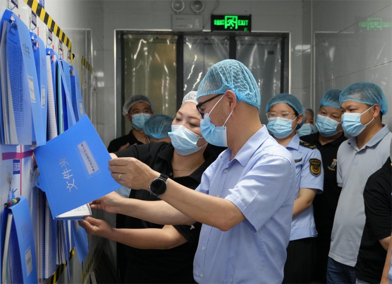 江民强一行深入食堂后厨,对操作间、储物间、留样间等关键区域进行了细致检查,查看了食品原材料采购台账、食品加工制作记录,了解了餐具清洗消毒情况、食品留样制度的执行情况和食堂日常卫生管理措施以及食品安全保障的具体做法等,深入询问了食材来源渠道、供应商资质等关键问题,全面掌握我校食堂食品安全方面的每一个环节。