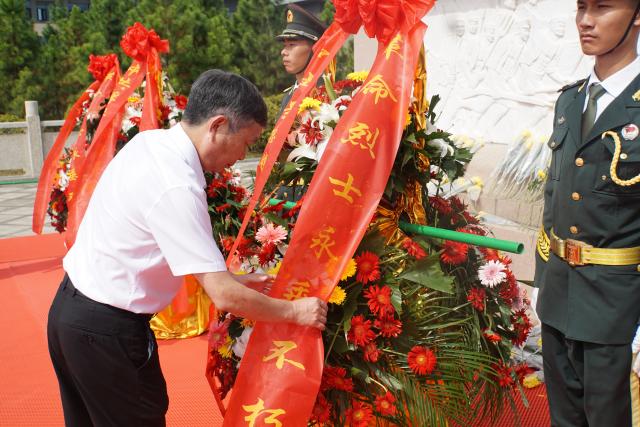 党委书记李良智仔细整理花篮缎带