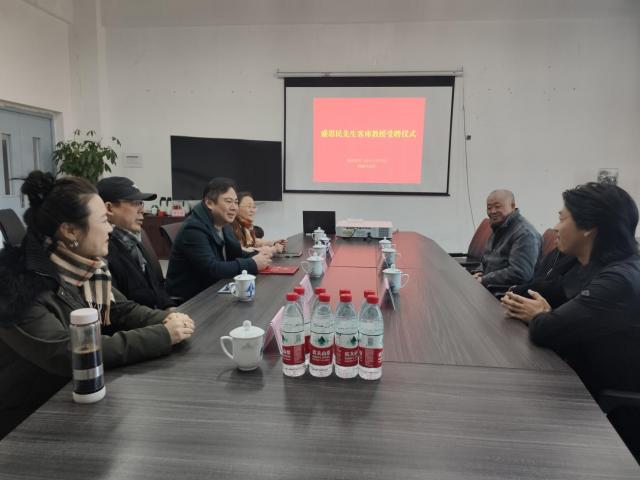 (本网讯:图|曾子晴/文|吴晓涵)12月21日,我校在艺术学院四楼会议室举行“盛思民先生客座教授受聘仪式”,党委副书记、校长陈雨前,深圳特区报主任编辑、国学专家高福生,艺术学院院长方漫,党总支副书记李莉,副院长陈实、张博,景德镇市书法家协会主席汪开潮等出席仪式。