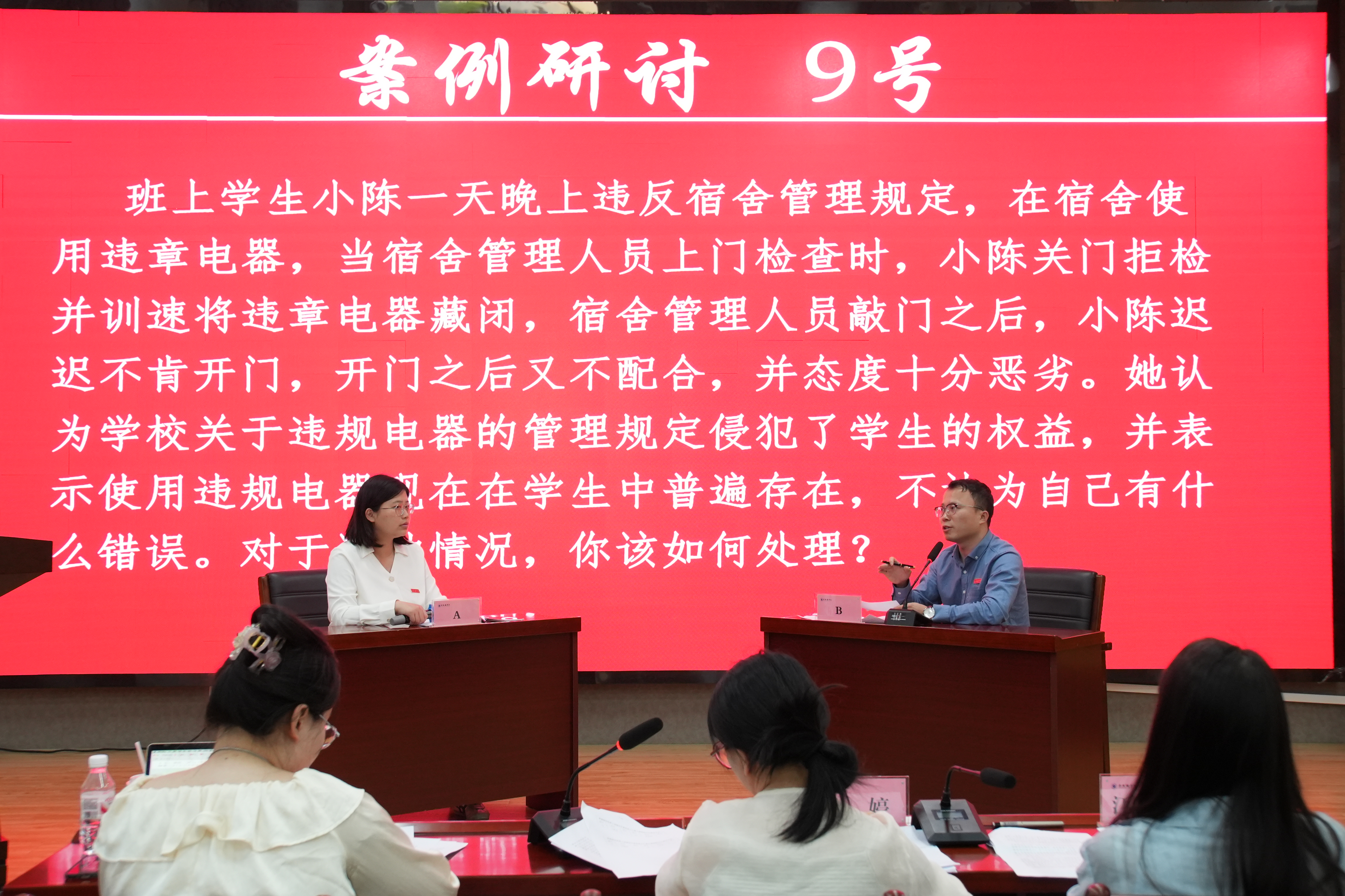 大赛设置了基础知识测试、案例研讨、谈心谈话三大核心环节。其中,4月27日进行的基础知识测试环节围绕思想政治教育理论、学生事务管理、心理健康教育等核心内容,全面检验辅导员的理论素养与教育引导专业水平;决赛阶段的案例研讨与谈心谈话环节,则以真实校园场景为依托,着重考察辅导员运用理论剖析复杂问题、精准研判风险、高效化解矛盾的实践能力,同时检验其对学生群体特征、成长成才规律的洞察深度,以及在思想引领、理论释惑、实际问题解决等方面的综合育人水平。