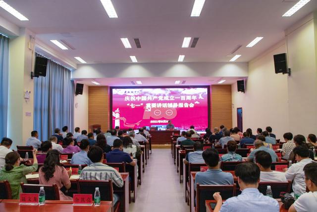 会议邀请景德镇市党史学习教育宣讲团成员、校马克思主义学院院长江旺龙教授为大家作了题为《“伟大宣言伟大复兴”,学习贯彻习近平总书记“七一”重要讲话精神》的专题辅导报告。报告主要从深入领会习近平总书记“七一”重要讲话的重大意义、深刻把握习近平总书记“七一”重要讲话的丰富内涵和全面贯彻落实好习近平总书记“七一”重要讲话精神等三个方面,进行了系统全面的宣讲和学习辅导。