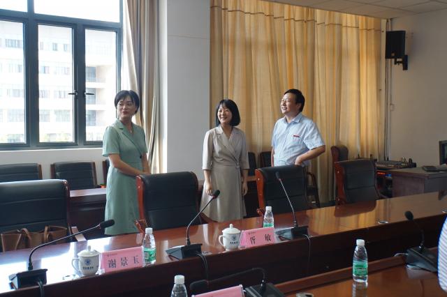 (本网讯:洪超、刘斌权)9月9日下午,在第37个教师节来临之际,民盟市委会主委谢景玉、副主委胥敏一行来我校走访慰问盟员老师。党委副书记王丽心亲切会见了谢景玉一行。党委委员、宣传统战部长方文龙主持座谈会。