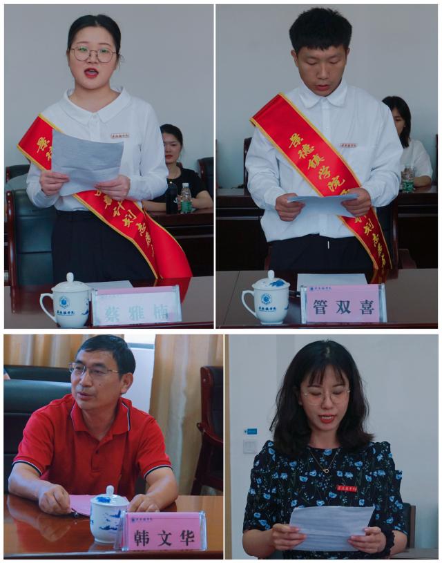 会上,校团委副书记赵新通报了我校2021年西部计划志愿者招募情况。西部计划志愿者蔡雅楠、管双喜、艺术学院辅导员代表金婷、生环学院党总支书记韩文华分别发言。