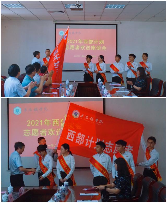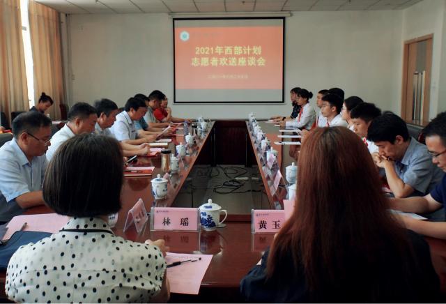(本网讯:黄求明、罗慧娟)6月25日上午,我校在行政楼318会议室召开2021年“西部计划”志愿者欢送座谈会。校党委书记李良智出席授旗,并发放慰问金。党委副书记王丽心主持会议。