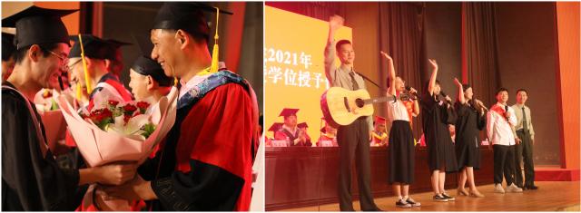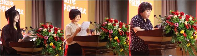 典礼上,毕业生代表、生物与环境工程学院2017级风景园林专业傅佳琴,毕业生家长代表邹金花,教师代表、艺术学院程幸教授分别发言。毕业生代表给教师献花,表达感恩和敬意。