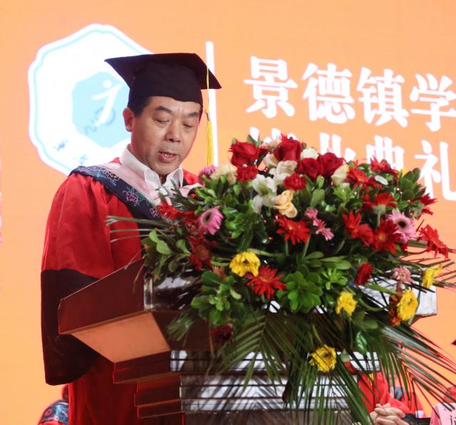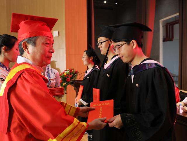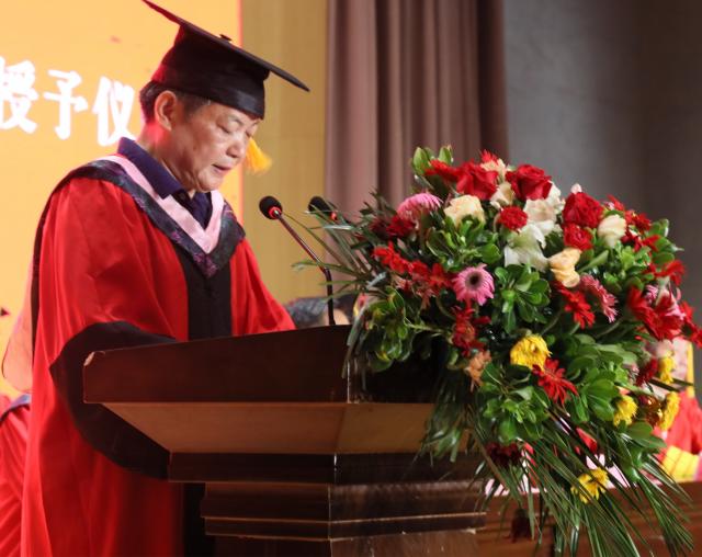 陈雨前代表学校向即将踏上人生新征程的毕业生们送上诚挚的祝贺和美好的祝愿。他勉励毕业生要牢记党史,坚守爱国情怀,始终扎根中国大地,自觉将个人理想融入到国家富强、民族复兴、人民幸福的历史洪流中,在中华民族伟大复兴的征程之中实现个人的价值;要锤炼品德,勇担时代重任,做到爱国报国,做到爱岗敬业,做到律己善人,成为既仰望星空又脚踏实地、既有所作为又堪当重任的新时代青年;要实干创新,书写奋进人生,做“不坠青云之志”的奋进者,做“此时不搏待何时”的搏击者,以实干笃行和守正创新,开启新的美好人生。