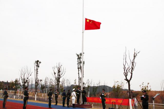 晨光熹微,寒风刺骨,全体师生庄重肃穆,精神抖擞。退伍军人代表周襄宇同学带领大家回忆南京大屠杀的历史,为英灵默哀,向先烈致敬,向三十万同胞表示深深的悼念。随后,全场肃立,退伍军人代表胡海涛带领全体人员宣誓:“勿忘国殇,警钟长鸣;以史为鉴,自强不息;天下兴亡,匹夫有责!”诤诤誓言在现场每个人心中回荡。活动最后,以国之名,降半旗向遇难同胞致哀,深情缅怀先烈。
