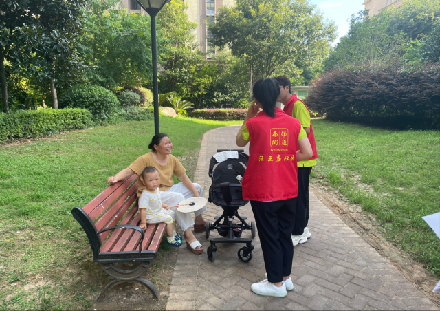 正逢暑期,烈日炎炎,高温难耐,志愿服务队队员们没有安逸的坐在空调房里,他们不畏酷暑,凭借顽强的意志力为社区居民服务着。他们有的顶着烈日在广场上发着接种疫苗的倡议书,有的穿梭在社区楼房的每一幢之间,还有的守在电话前一个又一个的拨通居民的电话耐心询问,汗水湿透了他们的马甲,但没有浇灭他们的为人民服务的热情。