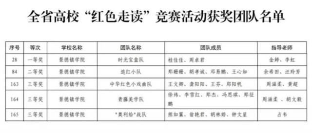 (本网讯:徐欣鹏)重温红色故事,走读践悟初心。近日,江西省高校“红色走读”竞赛活动获奖团队名单公布,我校5个团队脱颖而出,艺术学院时光宝盒队获一等奖,艺术学院追红小队获二等奖,艺术学院中华红色小戏曲队、青藤美学队,体育学院奥利给战队获三等奖的优异成绩。