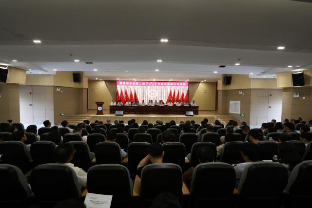 (本网讯:文|王清、朱静菡/图|丁欢畅、张金栋)6月19日下午,我校第二届二次教职工暨工会会员代表大会在图文报告厅胜利闭幕。校党委书记李良智,校党委副书记、校长陈雨前,校党委副书记王丽心,校党委委员、副校长吴丁、郑富年、郑昕芾,校党委委员、纪委书记李新荣,校领导胡继平,校党委委员、组织部部长朱贺江,校党委委员、宣传统战部部长方文龙,工会主席陈树发及其他大会主席团成员在主席台就坐。闭幕式由郑昕芾主持。