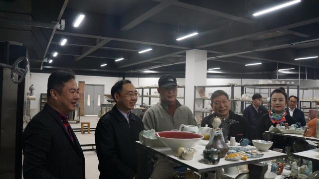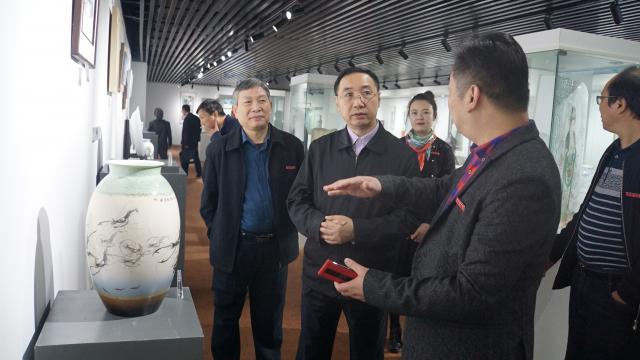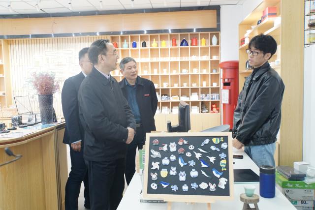 叶仁荪一行参观了艺术学院师生作品展厅和实践基地、创新创业学院、马克思主义学院红色教育基地等。在艺术学院,叶仁荪详细了解了新型陶瓷制作工艺和陶瓷烧制流程,对学校服务地方、特色办学表示肯定;在创新创业学院,叶仁荪和团十八大代表、我校优秀毕业生、鹰眼工作室创始人刘强进行了亲切交谈,他详细询问了工作室目前员工规模、经营状况以及未来发展规划,对刘强校友依托学校孵化基地取得创业成功表示赞赏,希望他克服疫情影响,行稳致远,把企业越办越好,更多吸纳毕业生就业;当叶仁荪了解到景院文创APP上线,产品线上线下销售两旺,他鼓励创业学生再接再厉,做出更好、取得更大业绩;在马克思主义学院,叶仁荪参观了瓷工运动展室、方志敏和红十军精神展室,瑶里改编展室,对学校结合区域红色文化,传承红色基因表示肯定,对学生实践讲解、创新思政教学实践方式给予肯定。