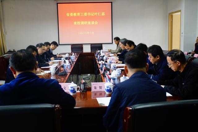 (本网讯:游好、苗静文、胡依依)10月19日上午,省委教育工委书记叶仁荪莅临我校就高校思想政治和安全稳定工作进行调研指导。校党委书记李良智,党委副书记、校长陈雨前,党委副书记王丽心等陪同调研。