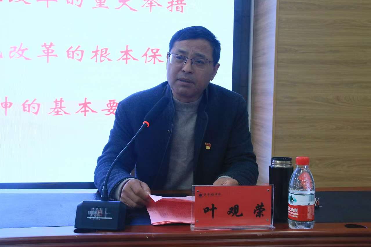 叶观荣以“深入学习贯彻党的二十届三中全会精神持续推进教育综合改革迈上新台阶”为主题,围绕深刻把握党的二十届三中全会的重大意义、深刻把握中央政治局工作报告的主要精神、深刻把握进一步全面深化改革的总体要求、深刻把握进一步全面深化改革的重大举措、深刻把握进一步全面深化改革的根本保证、深刻把握贯彻落实全会精神的基本要求六个方面,结合自己对党的二十届三中全会的学习理解,展开了深入浅出的讲解。