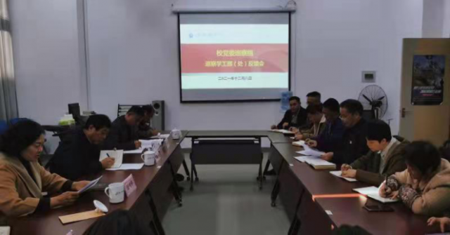 (本网讯:龚媛)12月8日,校党委巡察组巡察学工部(处)反馈意见会在学工部(处)214会议室召开,对学工部(处)巡察情况进行反馈,并对下一步整改工作提出要求。校党委委员、副校长郑昕芾,校党委委员、纪委书记、巡察工作领导小组组长李新荣,党委巡察组组长钱鸣华,纪委副书记程贤达出席会议,学工部(处)负责人陈后辉主持会议。