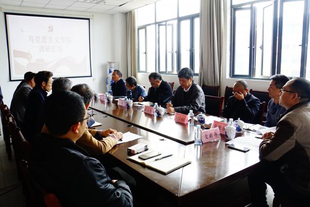马克思主义学院领导班子成员、教研室主任、副科级以上干部和部分教师代表参加调研座谈会。