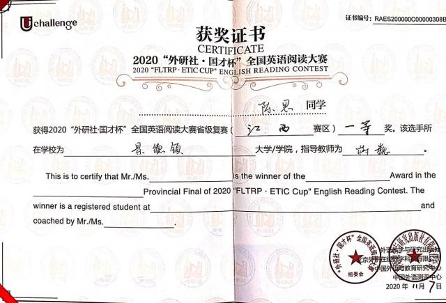 (本网讯:蒋巍)11月7日,2020“外研社·国才杯”全国英语演讲、写作、阅读大赛江西省复赛在井冈山大学落下帷幕。
