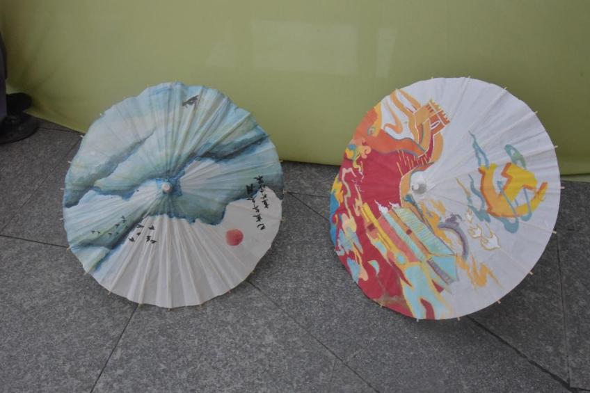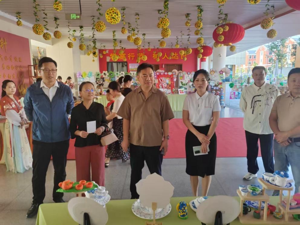 方漫一行首先参观了艺术节传统文化艺术作品展。一批别具匠心的各类非遗传统手工艺作品形式多样,丰富多彩,令人目不暇接。其中的漆画、油纸伞、粘土、扭扭花等作品由我校手工协会师生指导孩子们完成。这些作品不仅是师生们巧思与匠心的结晶,更完美诠释了传统工艺与现代创意的深度融合。