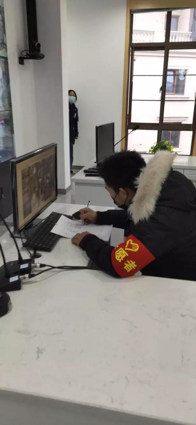 2月初,黄晨曦被安排在浙江省嘉兴市桐乡市屠甸镇街道社区参与防疫值班工作。每天,她认真登记小区进出车辆详细信息,对进出小区的每一位居民进行温度测量,并分发防疫手册提醒大家做好自身防护。