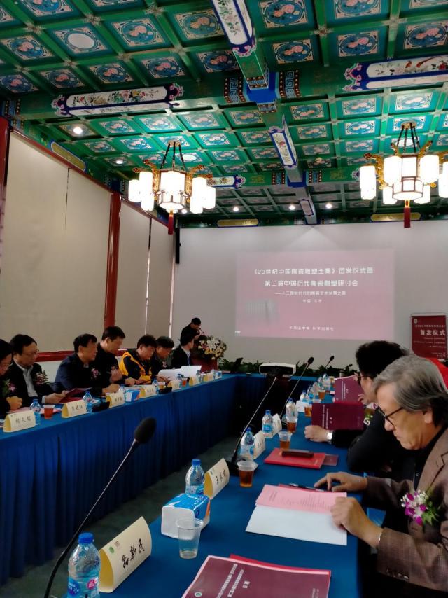 (本网讯:远征)11月8日上午,由河南省平顶山学院和科学出版社联合主办的第二届中国历代陶瓷雕塑艺术展暨《20世纪中国陶瓷雕塑全集》首发仪式(座谈会)在北京隆重举行。平顶山学院校长苏晓红、副校长张久铭,科学出版社副总经理胡华强、《20世纪中国陶瓷雕塑全集》总主编梅国建、中国古陶瓷学会会长孙新民、景德镇陶瓷大学原校长宁钢以及来自北京大学、清华大学、北京故宫博物院、天津美术学院、同济大学、景德镇陶瓷大学和景德镇学院等高校和学术机构的专家学者40余人济济一堂,共襄盛举。景德镇陶瓷大学副校长吕品昌、著名陶瓷雕塑家周国桢、刘远长、潘柏林通过视频致贺,联合国教科文组织陶瓷文化保护与创新教席主持人、国际陶艺学会陶瓷文化大使、《20世纪中国陶瓷雕塑全集》主审、景德镇学院校长陈雨前致信祝贺,并委托教席专家、景德镇学院海上丝绸之路研究院院长王安维、常务副院长吴维惠参加会议,王安维代表陈雨前校长宣读贺信。