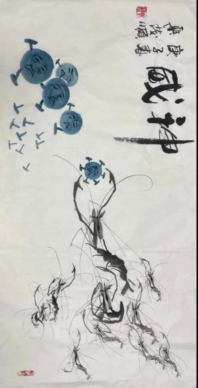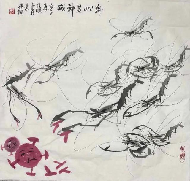 作品说明:龙虾寓意万众一心,各显神威;充分体现众志成城抗击新冠肺炎疫情必胜的信心。武汉加油!中国必胜!