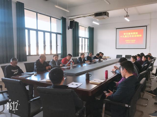 (本网讯:赵云君)11月9日下午,机电学院全体教职工在五楼会议室召开党的十九届五中全会精神专题学习会。传达学习党的十九届五中全会会议公报和《中共中央关于制定国民经济和社会发展第十四个五年规划和二〇三五年远景目标的建议》,传达学习学校党委相关文件精神。机电学院领导班子成员以及全体教职工参加会议。党总支副书记毛鹏飞主持会议。
